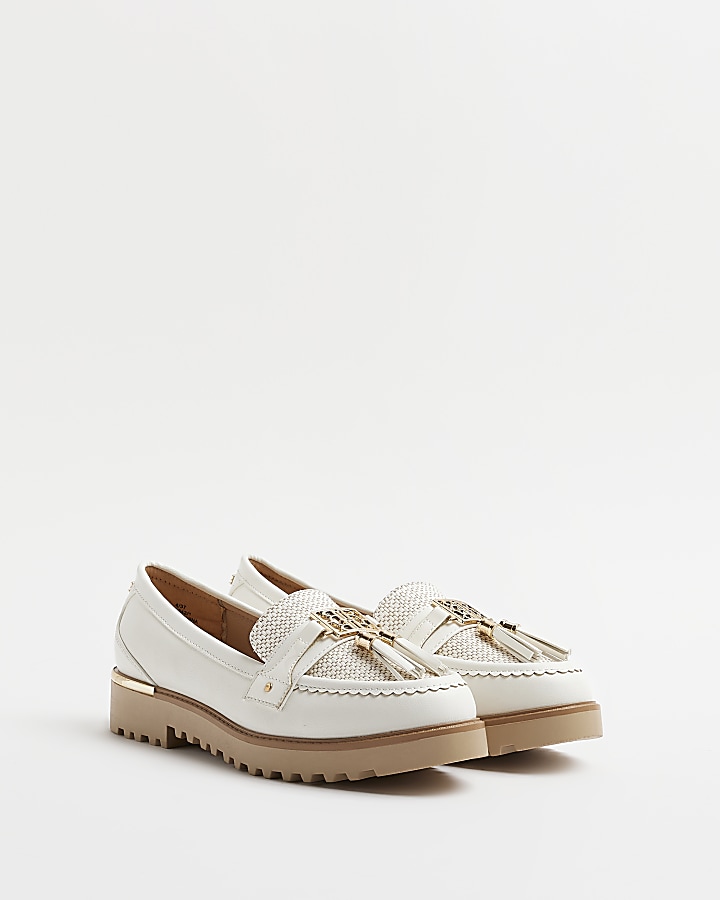 Cream wide fit tassel detail loafers River Island